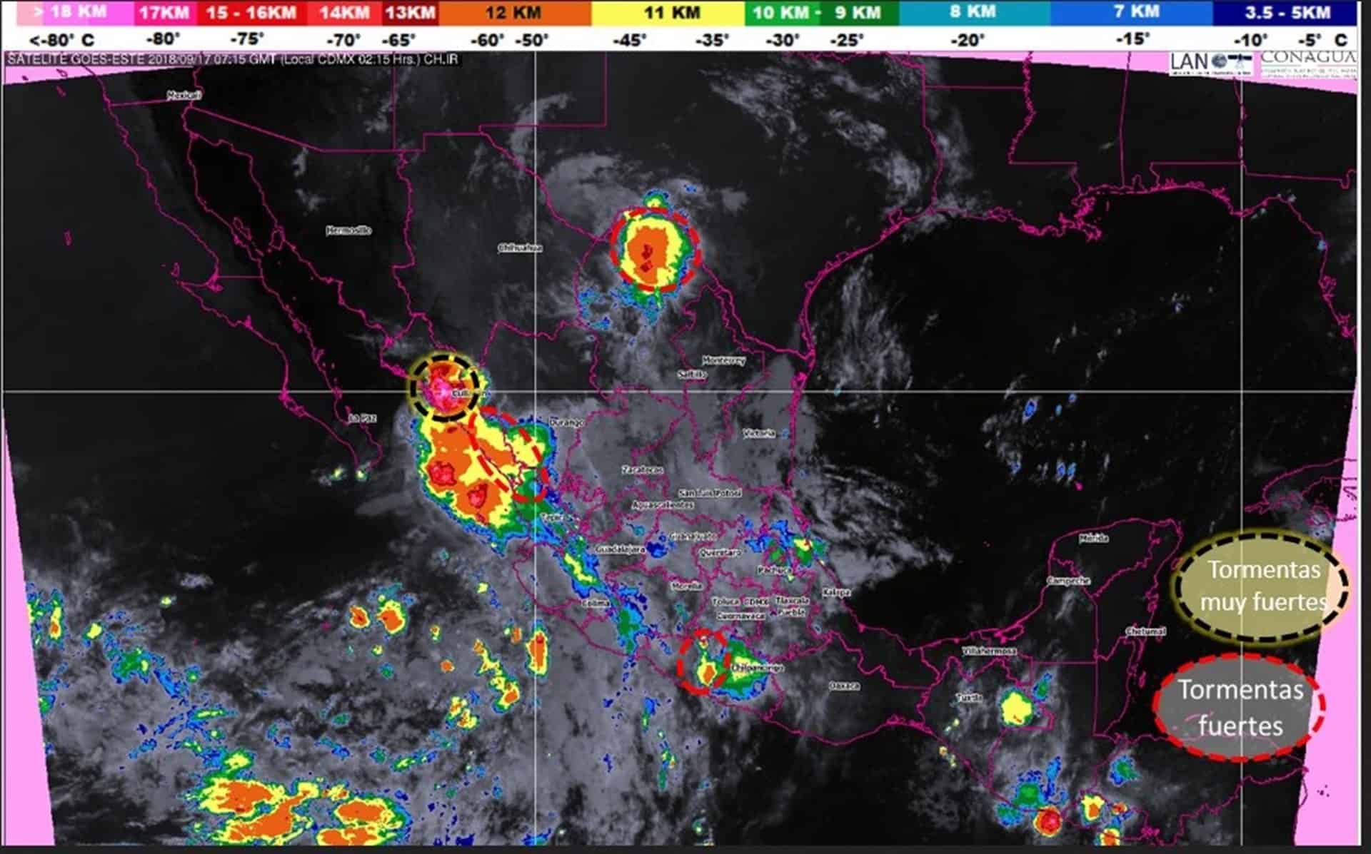 En el reporte más reciente del organismo dependiente de la Comisión Nacional del Agua (Conagua), también pronosticó que otra zona de inestabilidad en la frontera norte de México, ocasionará desarrollo de nubes de tormentas en el norte y noreste del país, a su vez, amplias zonas de inestabilidad atmosférica superior, cubrirán el norte, occidente y sur de México.