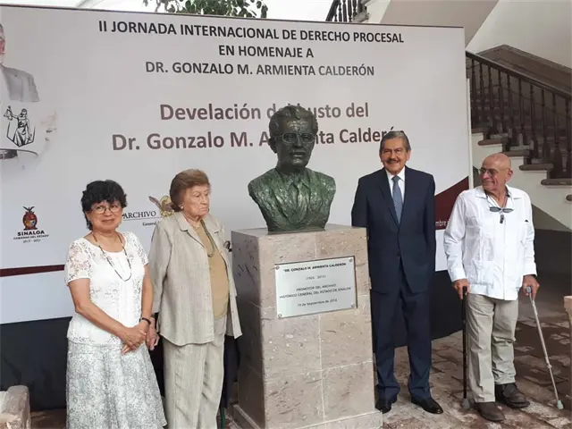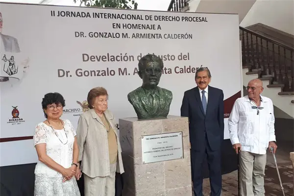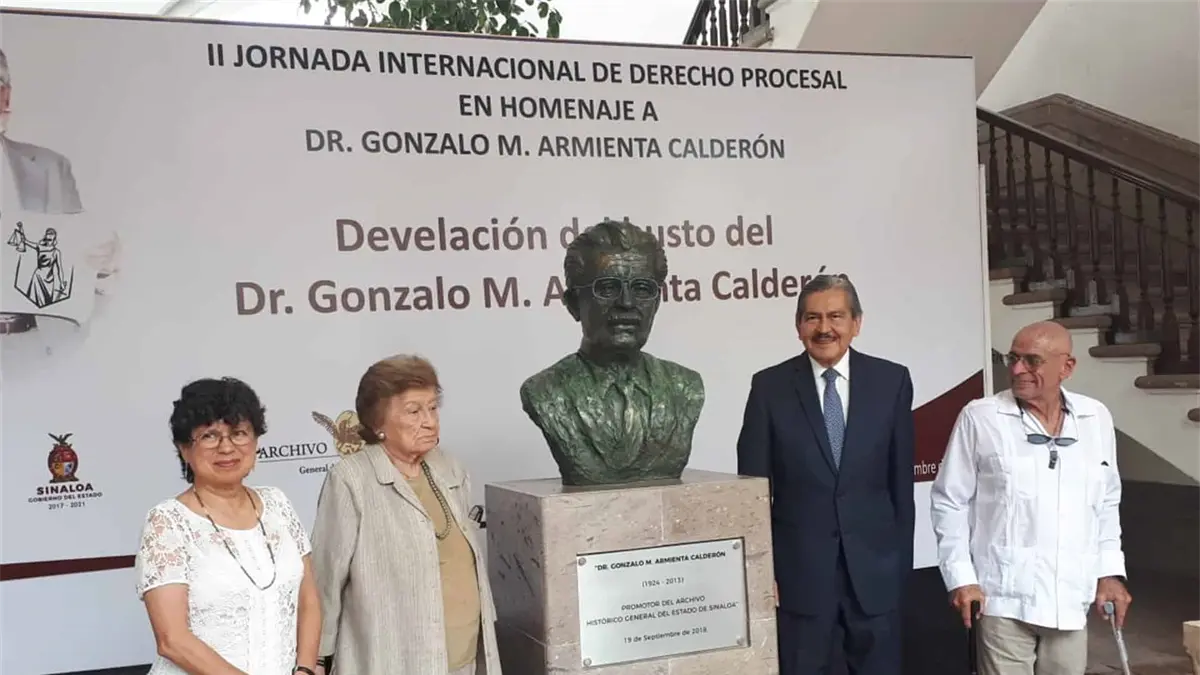 Culiacán, Sin.- En el marco de la II Jornada Internacional de Derecho Procesal, se develó en el patio del Archivo Histórico General del Estado de Sinaloa, el busto del Dr. Gonzalo M. Armienta Calderón.