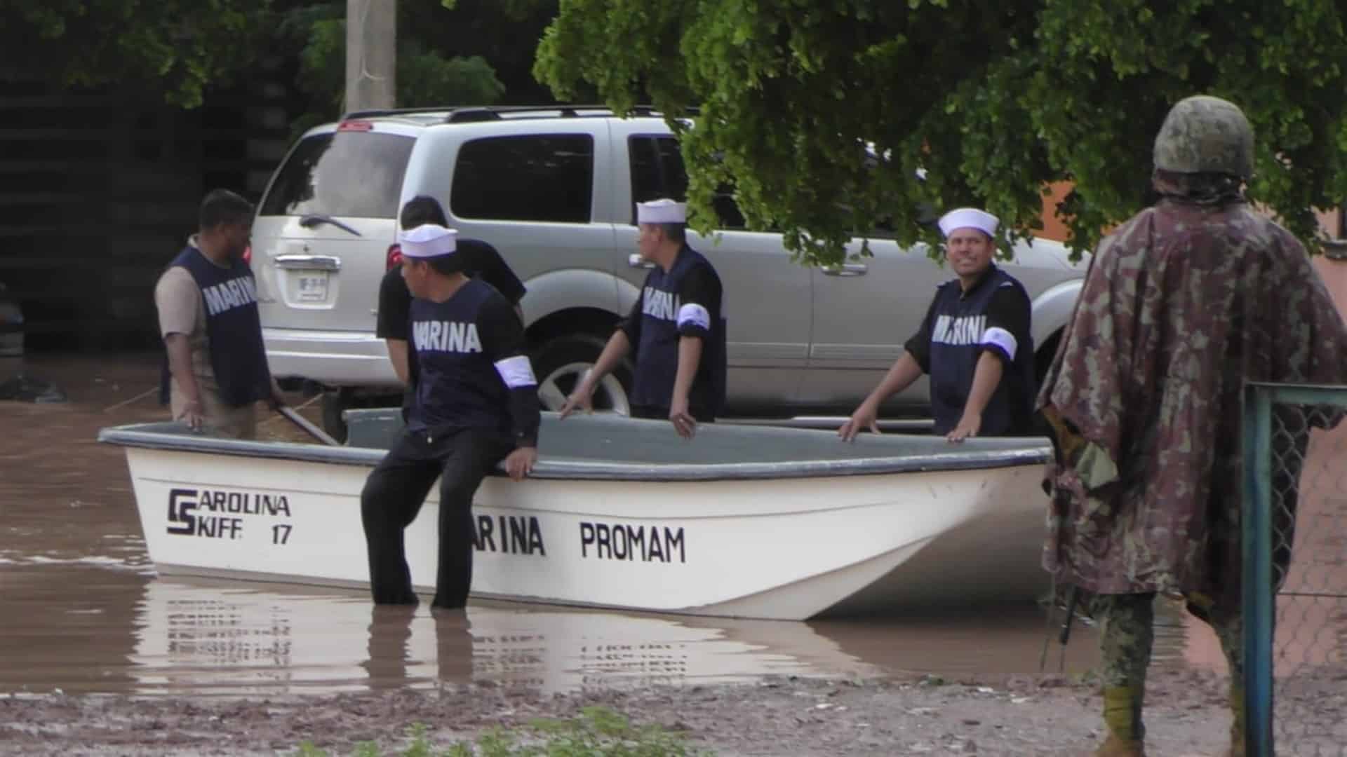 Los Mochis, Sin.- Debido a las afectaciones en sus viviendas dos familias del fraccionamiento Los Virreyes solicitaron ser evacuadas de emergencia a través de una unidad del transporte urbano, mientras que en el fraccionamiento Del Real, elementos de la Marina se metió en lanchas a rescatar gente.
