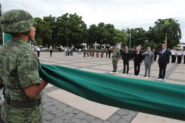 Correspondió al Subsecretario de Desarrollo Sustentable, Efraín Leyva Perea, como representante del Poder Ejecutivo, izar la bandera nacional a media asta, en compañía de los representantes de los demás Poderes, el diputado Joel Salomón Avitia, por parte del Congreso del Estado; el Magistrado Ricardo López Chávez, por el Supremo Tribunal de Justicia; el Secretario de Desarrollo Social del Ayuntamiento de Culiacán, Jesús Osval Meléndrez Soto; y, en representación de la Novena Zona Militar, el Subteniente de Infantería, Víctor Hugo Juárez Domínguez.