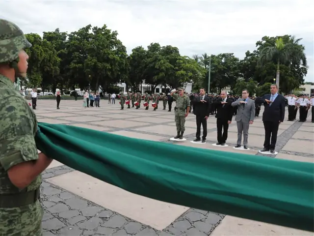 Autoridades de gobierno izan la bandera nacional a media asta.