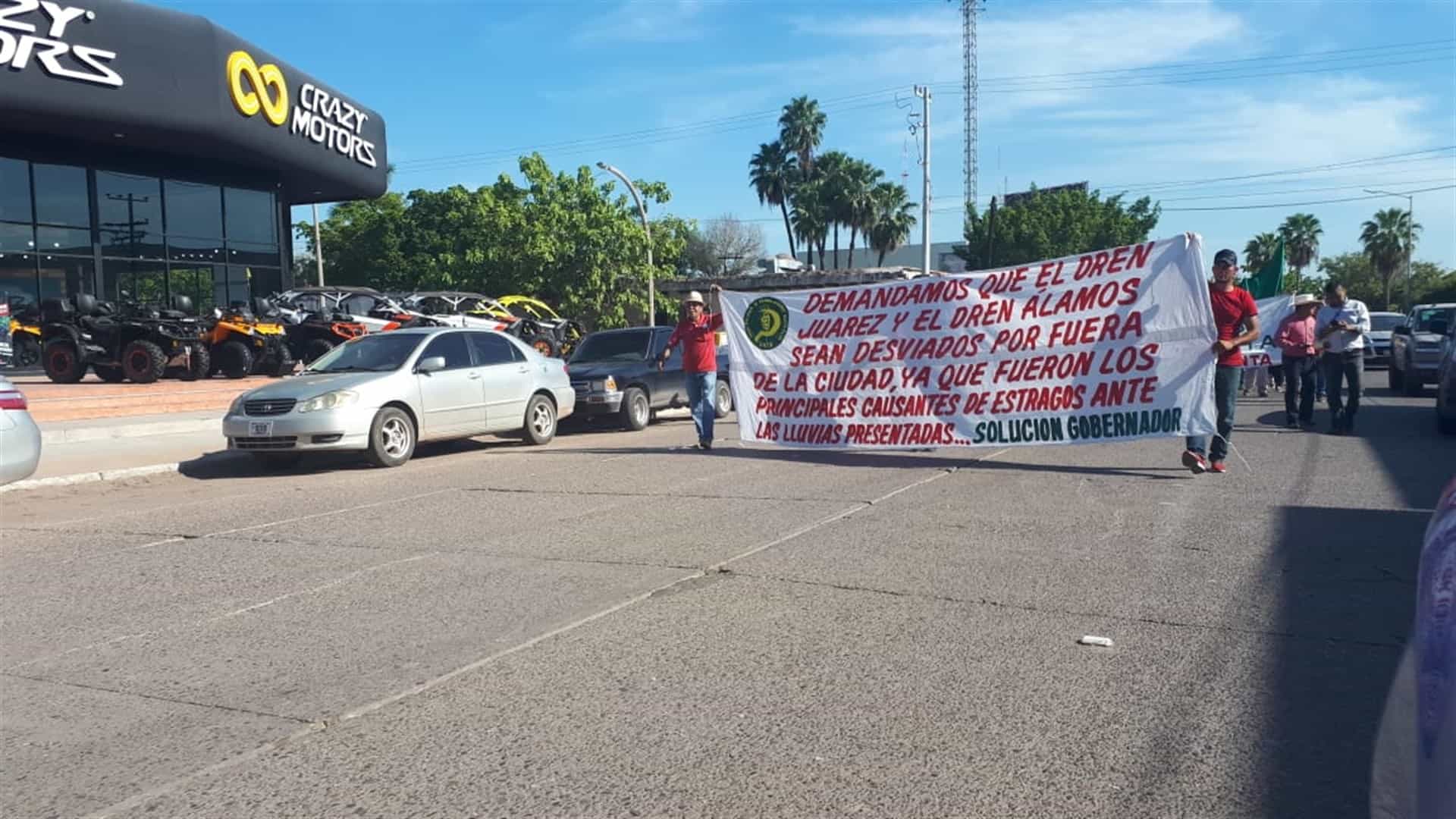 Los manifestantes señalaron que estos drenes llegan a la ciudad con el agua de uso agrícola del Valle del Fuerte, y cuando se suman a los desechos de la ciudad en época de lluvias, son los causantes de las inundaciones en las zonas bajas y colindantes con la infraestructura.