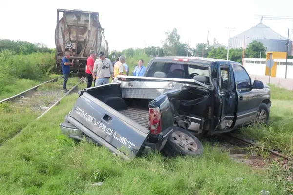 Embiste tren a camioneta en Guamúchil