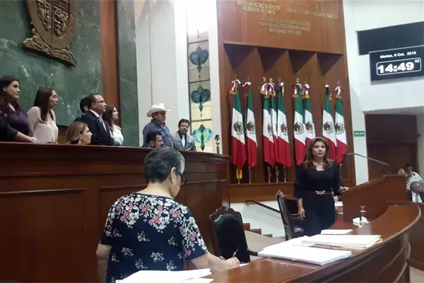 Los legisladores dejaron su curul para subir al estrado donde se sientan los integrantes de la Mesa Directiva a causa de que los docentes se manifestaban en contra de la priista, quien se pronunció en desacuerdo con la propuesta de Morena para que se exhortara al Gobierno Estatal para que gestione la suspensión de la evaluación docente, ello bajo el argumento de que los maestros deben de estar en las aulas para que se garantice una educación de calidad.