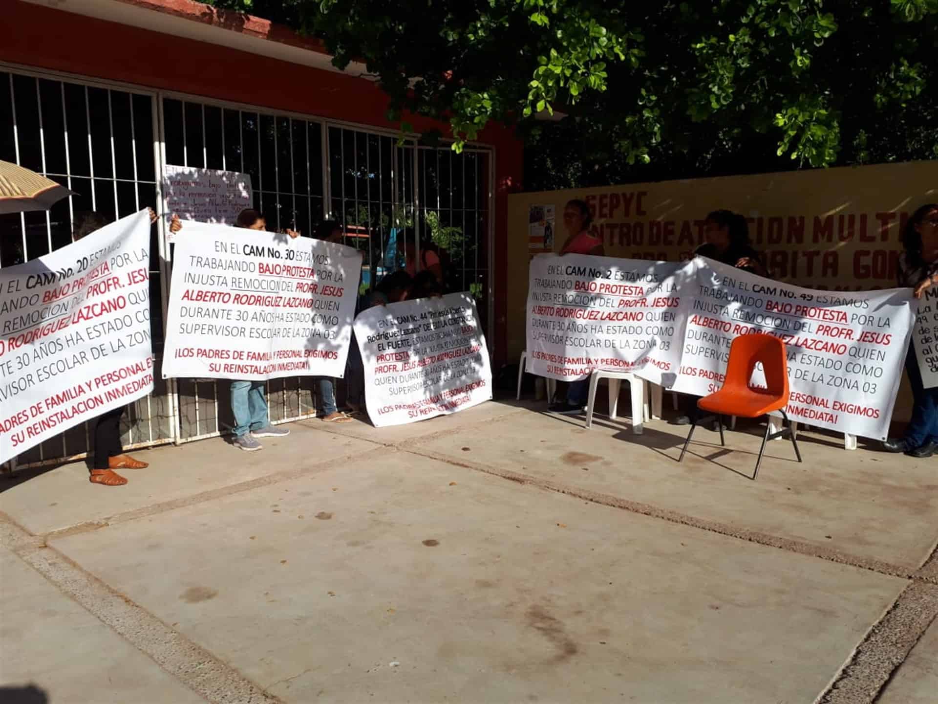 Los Mochis, Sin.- Padres de familia tomaron este martes el Centro de Atención Múltiple (CAM) número 26, ubicado en la colonia Las Malvinas en exigencia de la reinstalación del supervisor de la zona 03, Alberto Rodríguez Lazcano, que de forma sorpresiva fue removido de dicho puesto, después de más de 30 años de fungir en ese cargo.
