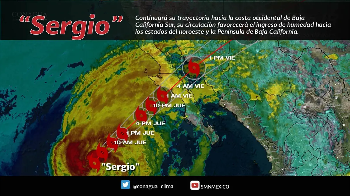 "Sergio" mantiene trayectoria hacia Baja California Sur