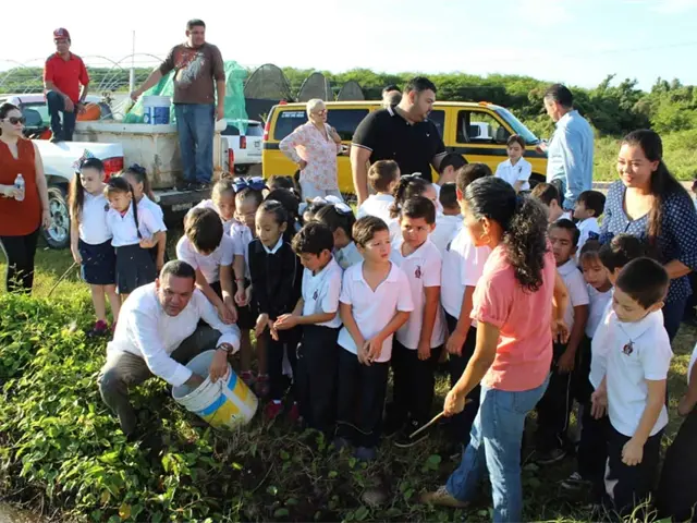 Culiacán, Sin.- Niños y niñas de primaria pertenecientes a la Sociedad Educadora del Saber, recibieron la visita del secretario de Pesca y Acuicultura, Sergio Torres, con quien realizaron actividades didácticas como la siembra de alevines.
