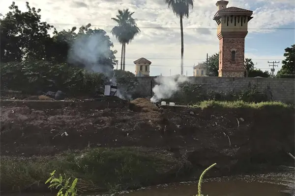 Culiacán, Sin.- Vecinos del fraccionamiento Villas del Río, denunciaron que casi todos los días, personas desconocidas están tirando basura de manera clandestina en las márgenes y el cauce del Dren Bacurimí, pero además tienen el descaro de quemar algunos desechos en la zona.