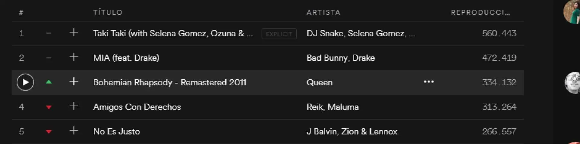 A pocos días de su estreno en salas, las reproducciones del "soundtrack" original de la película en Spotify, se incrementó mundialmente un 322 por ciento, mientras el catálogo de música de Queen aumentó un 156 por ciento en reproducciones dentro de la plataforma, además, el éxito “Bohemian Rhapsody”, nombre que lleva el filme, se elevó un 137 por ciento, de acuerdo a un comunicado.