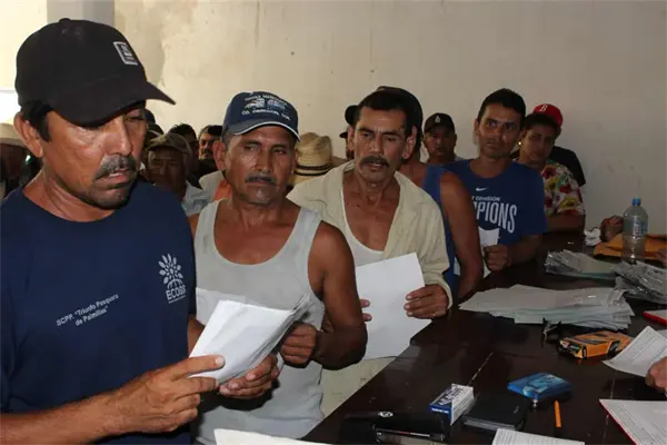 El secretario de pesca y acuacultura, Sergio Torres Félix, acudió a este poblado a entregar los cheques correspondientes, al grupo de pescadores que pertenecen al estrato más vulnerable del sector pesquero.