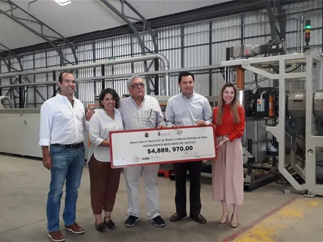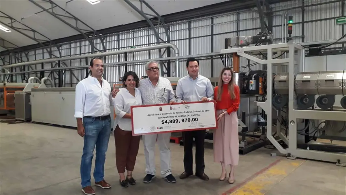 Culiacán, Sin.- El Delegado federal de la Secretaría de Economía (SE) en Sinaloa, Rafael Rodríguez Castaños, entregó casi cinco millones de pesos del Fondo Nacional del Emprendedor para adquirir maquinaria y producir insumos para la fabricación de infraestructura agrícola a invernaderos Mexicanos del Pacifico.