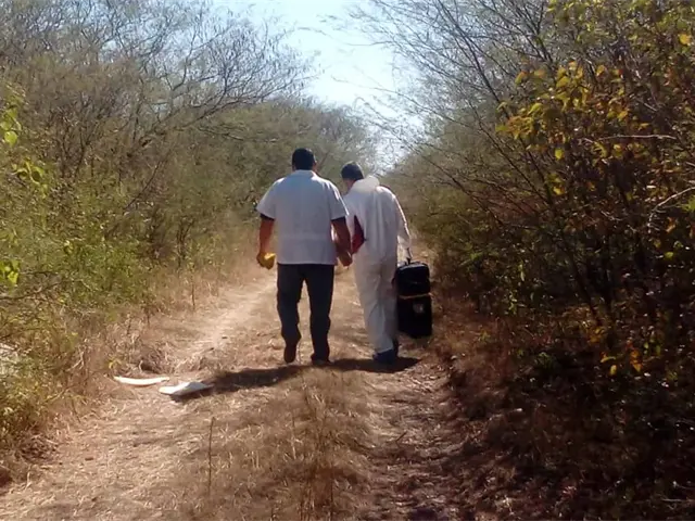 El cadáver se encontraba en avanzado estado de descomposición, por lo que no fue posible identificar a la víctima. A simple vista se apreciaba que tenía impactos de bala en la cabeza y traía puesta una camiseta con estampado tipo militar, pantalón de mezclilla azul y unas sandalias.