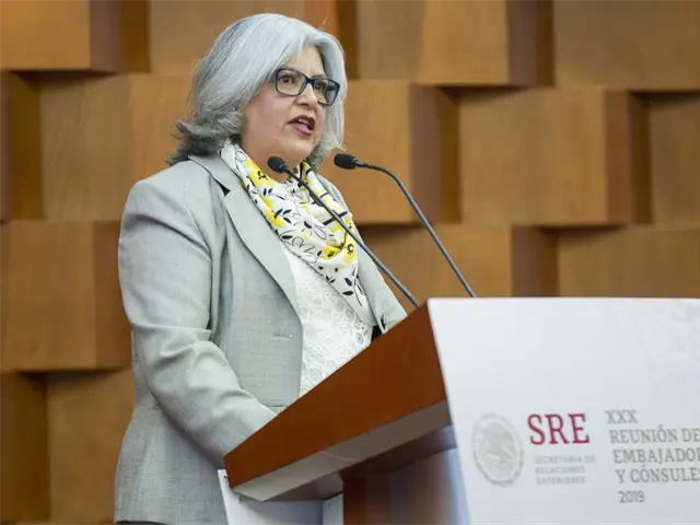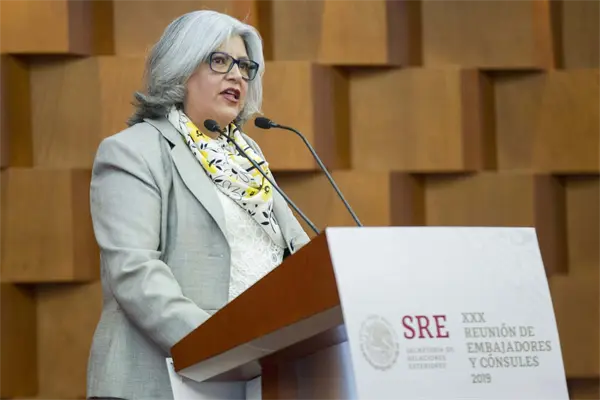 En el Salón Morelos de la Secretaría de Relaciones Exteriores (SRE), la funcionaria Federal dijo que la economía mexicana ha tenido un crecimiento muy por debajo de sus principales socios comerciales y de su deuda social.