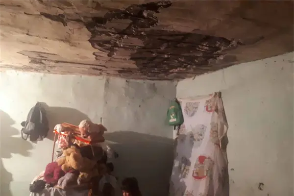 “El techo se me caía por pedazos, se me empezó a comer por pedazos y se empezó a enlodar la parte de la pared, y una partecita del otro cuarto, se cayó otra partecita, pero más pequeña; aquí fue la parte más grande donde se cayó”.