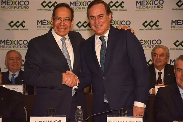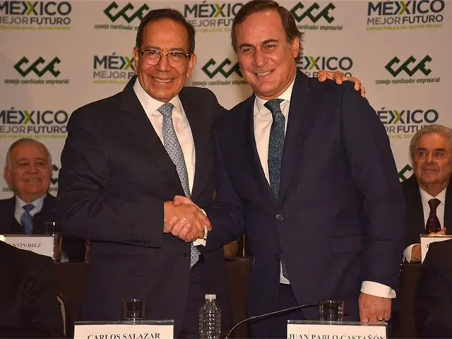 Antes, Gustavo de Hoyos, presidente de la Confederación Patronal de la República Mexicana (Coparmex), felicitó a Salazar Lomelín, líder del Comité de Propuesta Económica de este organismo por su elección unánime como Presidente del CCE.