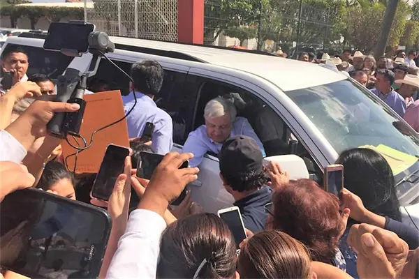 Así fue el encuentro con López Obrador en El Rosario, cuando, a bordo de una camioneta, salió tras encabezar un acto para anunciar apoyos para la construcción de la presa Santa María y la Picachos.