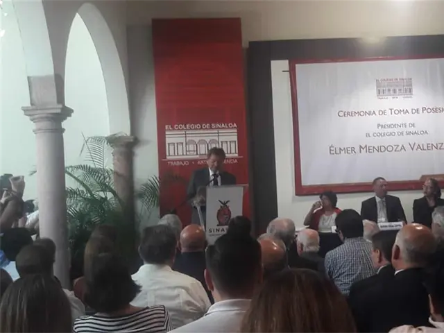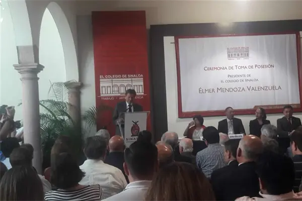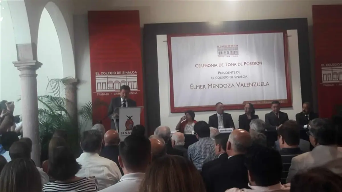 Culiacán, Sin.- Por ser un novelista sinaloense destacado a nivel internacional, este lunes se le tomó posesión como Presidente del Colegio de Sinaloa a Élmer Mendoza Valenzuela, quien estuvo acompañado por el Gobernador del Estado, Quirino Ordaz Coppel.