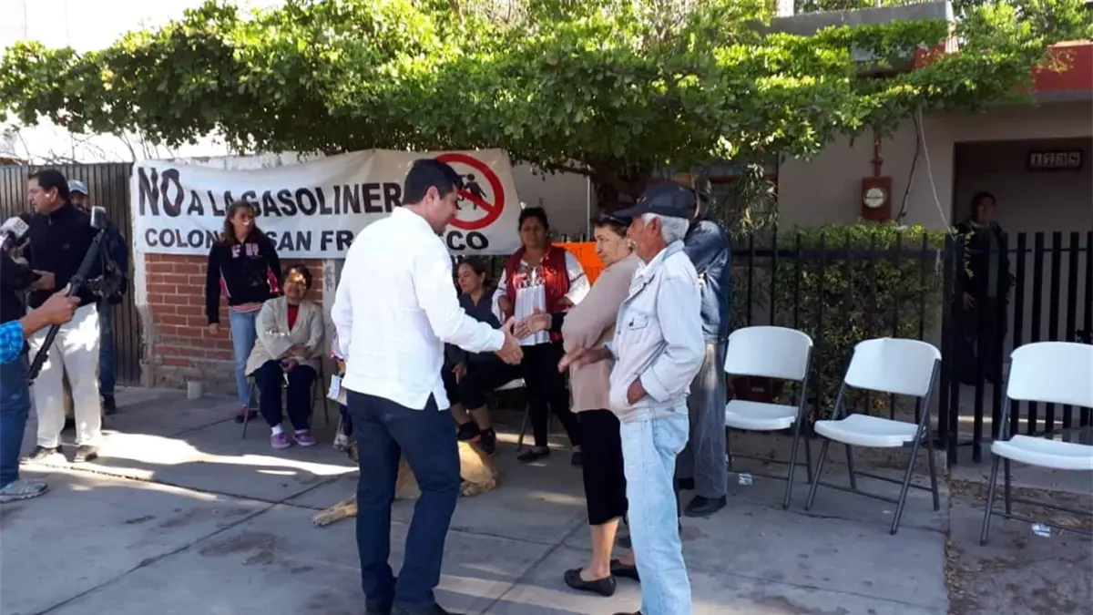 Los Mochis, Sin.- Con el objetivo de reiterar su apoyo para con los vecinos de la colonia San Francisco, quienes se oponen a la operación de una gasolinera en la calle Francisco I. Madero, el alcalde Manuel Guillermo Chapman Moreno visitó, la mañana de este viernes, el plantón permanente que tienen los inconformes, justo a un lado de la estación de servicios.