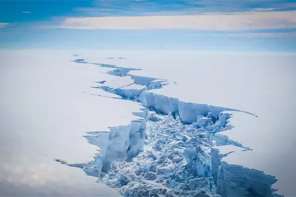 Para los especialistas, el peligro inmediato es la fisura del centro de la imagen, la cual había estado estable durante 35 años, sin embargo, esta grieta comenzó a acelerar hacia el norte a una velocidad de 4 kilómetros por año.