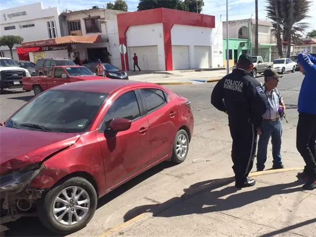 El choque se registró a las 11:00 horas de este martes, donde se vieron involucrados una patrulla de Tránsito Municipal, marcada con el número 3155, y un vehículo Toyota Yaris, color tinto, modelo 2018, con placas de Sinaloa.