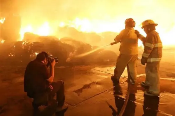 Su imagen muestra la labor de bomberos en su ciudad natal, mientras intentan extinguir un incendio en una planta recicladora en el año 2018, acción que presenció y con la cual pudo conocer de cerca los retos que enfrentan.