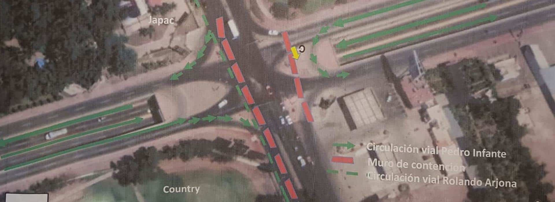 Para las unidades que circulen por Rolando Arjona de norte a sur, tomarán el bulevar principal de Villas del Río para salir a Espinoza de los Monteros y tomar al sur hacia el Pedro Infante.