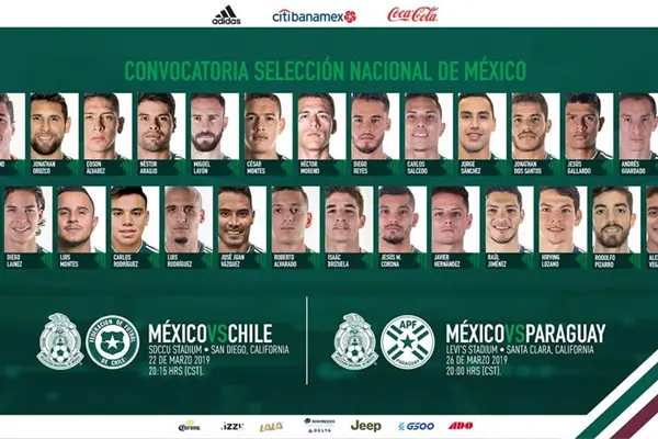 Entre las ausencias más notorias están las de Carlos Vela del Los Angeles FC, Marco Fabián del Philadelphia Union y Héctor Herrera del Porto, jugadores de los que ya se conocía que no estarían para los partidos que se disputarán los días 22 y 26 de marzo en San Diego y Santa Clara, California.