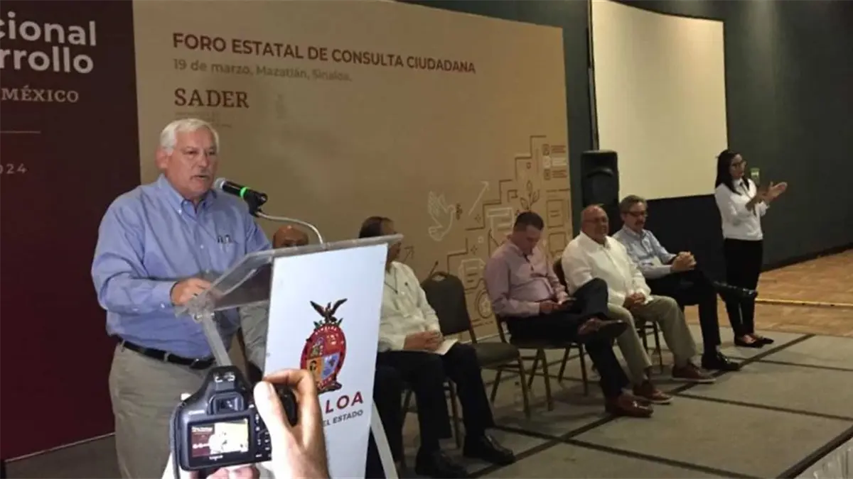 En el Foro Estatal de Consulta Ciudadana para la creación del Plan Nacional de Desarrollo 2019-2024, Villalobos Arámbula estuvo acompañado por el Gobernador de Sinaloa, Quirino Ordaz Coppel.