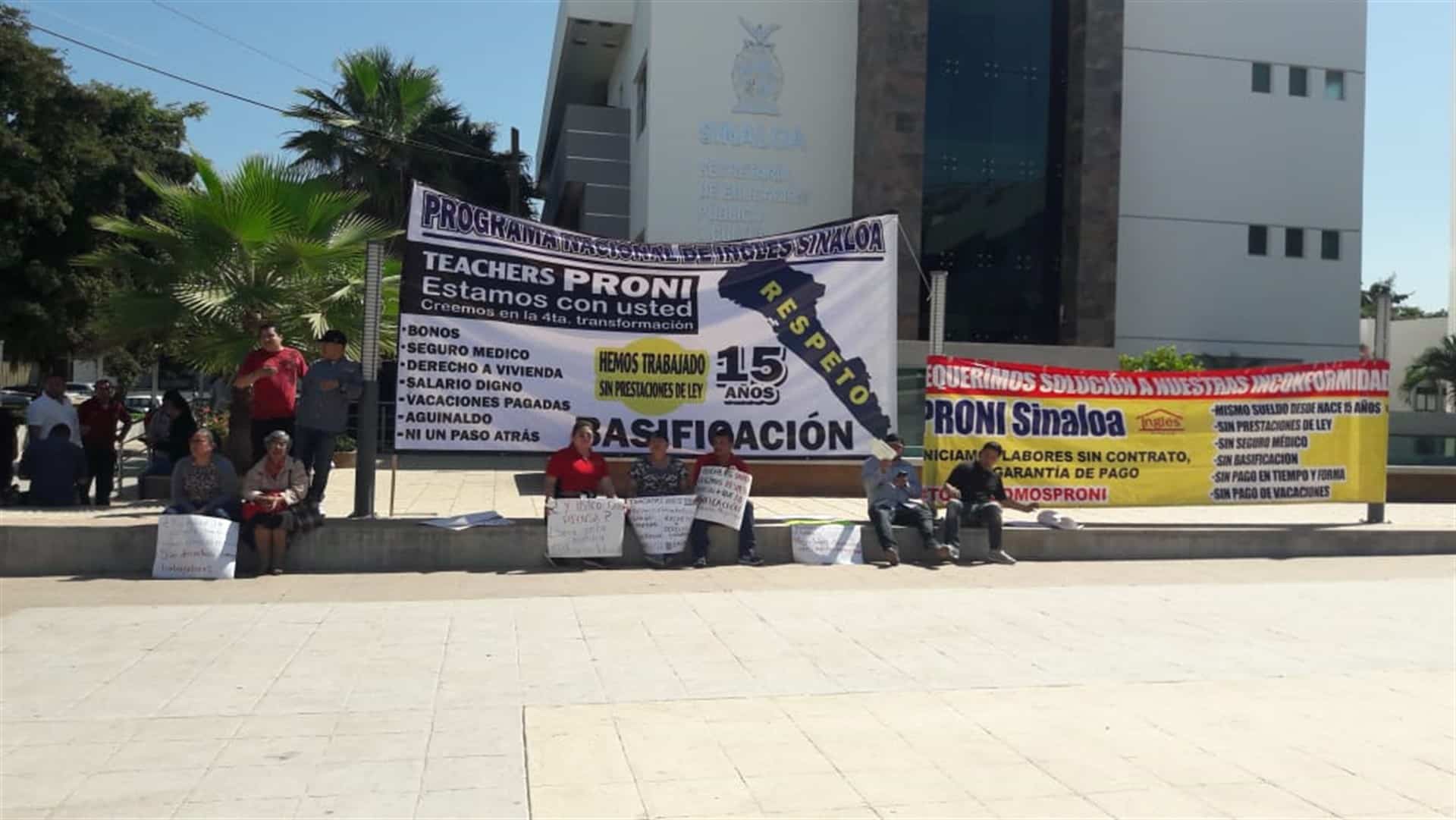 Culiacán, Sin.- Bajo la exigencia de que se regularicen sus salarios y se paguen las quincenas en tiempo y forma, un grupo de maestros de inglés se manifestó en las instalaciones de la SEPyC en Culiacán.