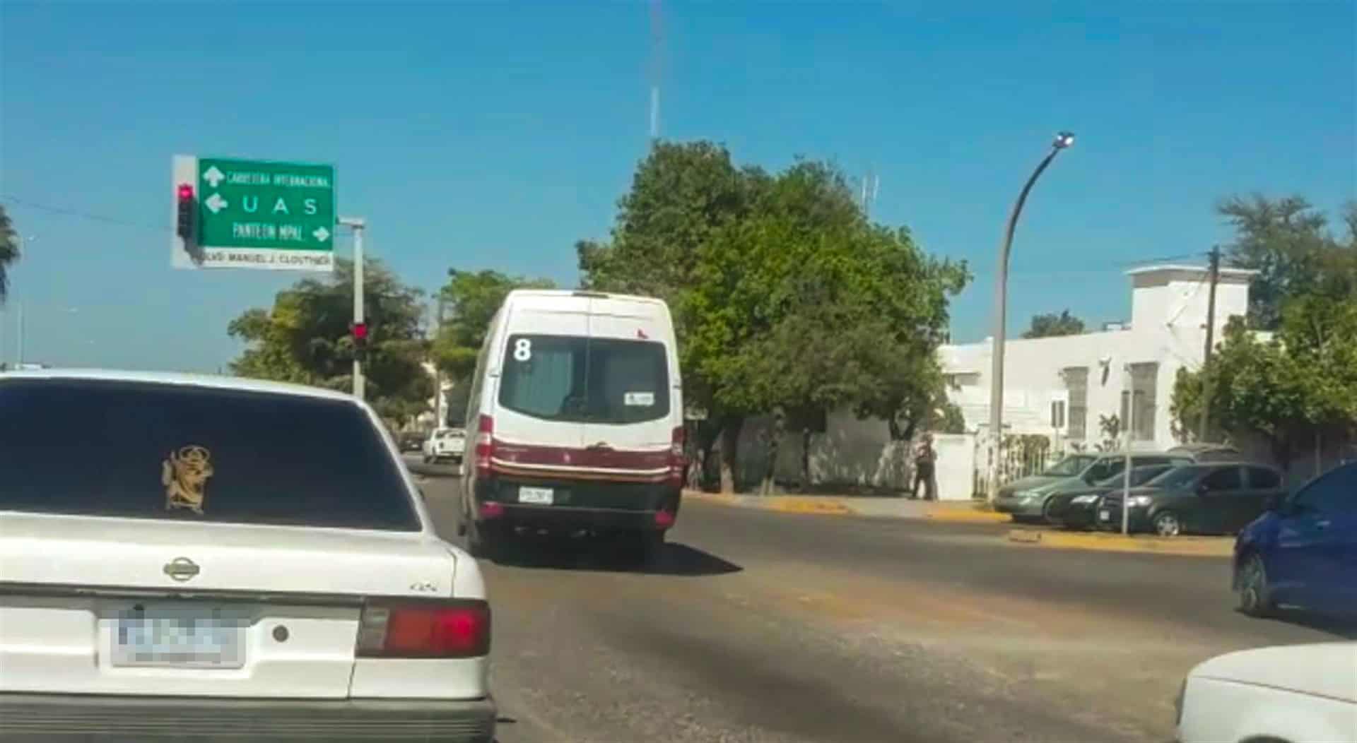Los Mochis, Sin.- Lectores de Luz Noticias, reportan al chofer de una camioneta Sprinter utilizada para transporte público, cruzando un transitado crucero de bulevares en la salida norte de la ciudad; por fortuna no provocó un accidente.