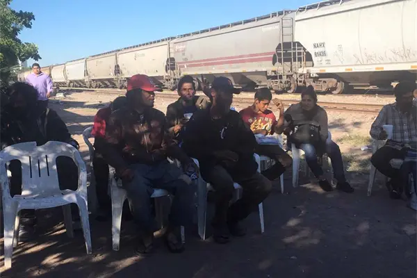 Un grupo de personas acude cada 15 días a las vías del tren que se encuentran detrás de la capilla de Malverde en Culiacán para ofrecerles comida y hablar de dios a los indigentes y migrantes.
