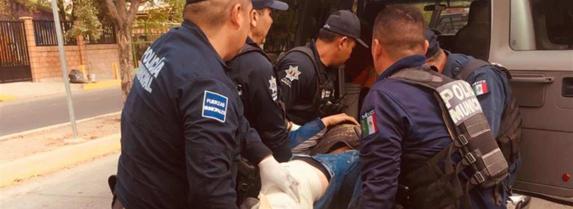 El hecho se registró la mañana de este día, dejando a uno de los accidentados con una posible fractura de pierna, motivo por el cual agentes municipales lo auxiliaron, improvisando una férula, con la cual le inmovilizaron la pierna derecha, y lo trasladaron de emergencia al seguro social en una unidad de rescate de la Policía Municipal, mientras que elementos de Cruz Roja atendían al otro herido.