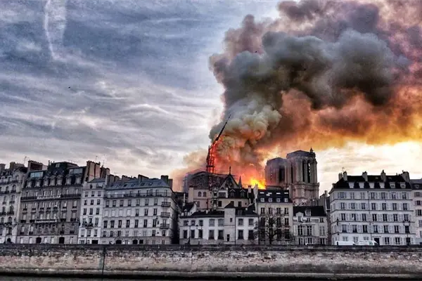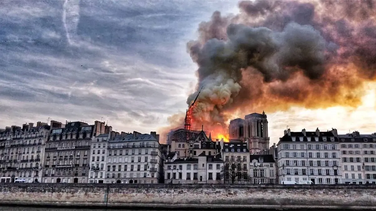 La llamada aguja de la catedral gótica se derrumbó a causa del voraz fuego.