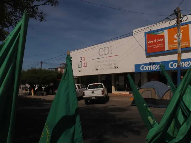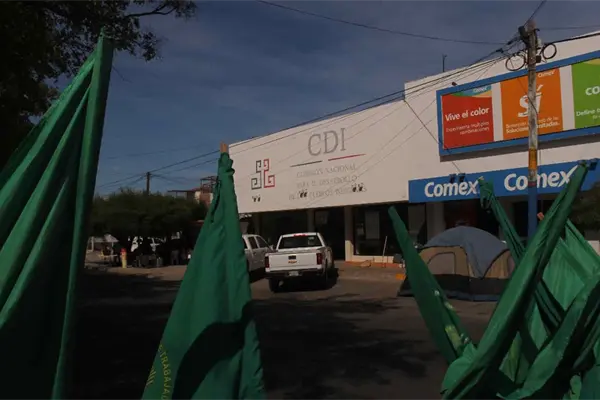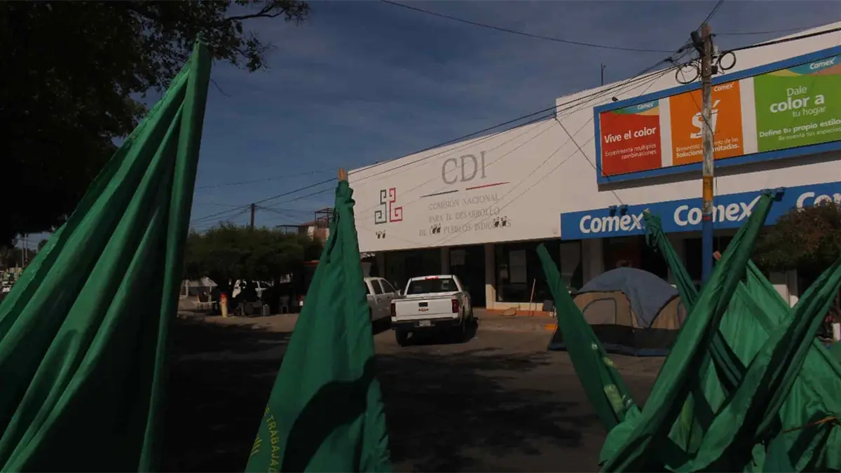 Los Mochis, Sin.- Como parte de la convocatoria nacional, la Coalición de Organizaciones Democráticas, Urbanas y Campesinas (Coduc) y de la Unión de Trabajadores Agrícolas (UNTA) mantienen un plantón en las instalaciones del Instituto de Atención a Pueblos Indígenas (INPI) en Los Mochis.