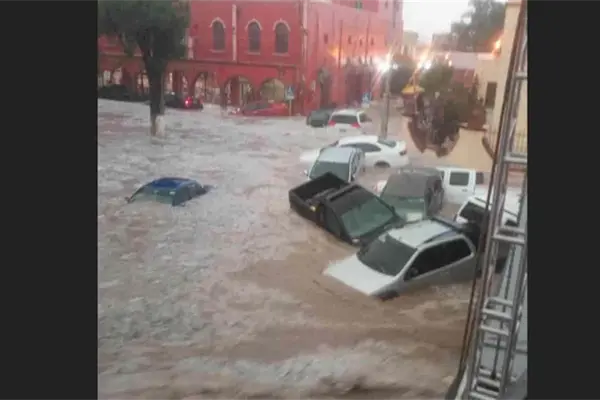 Tromba arrastra vehículos y causa inundaciones en Matehuala