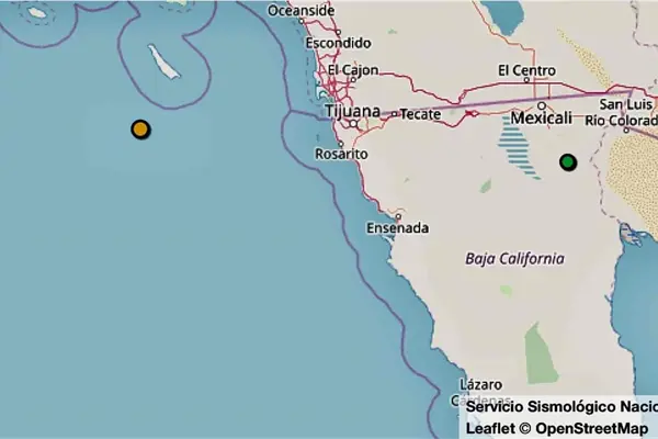 El sismo tuvo lugar a una latitud 32.47, una longitud -118.68 y una profundidad de 10 kilómetros, puntualizó el Sismológico.