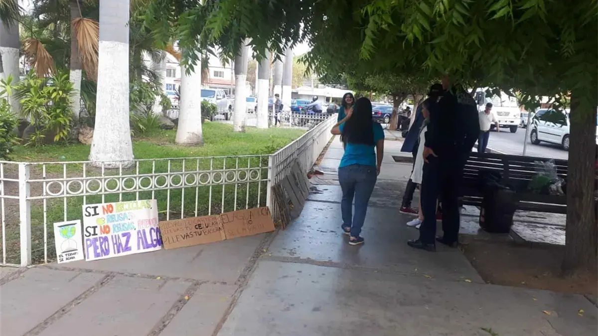 Lo anterior, durante una manifestación pacífica de este grupo en los jardines del Palacio Municipal de Ahome, donde mostraron pancartas de llamados a cuidar el planeta.
