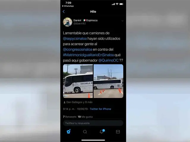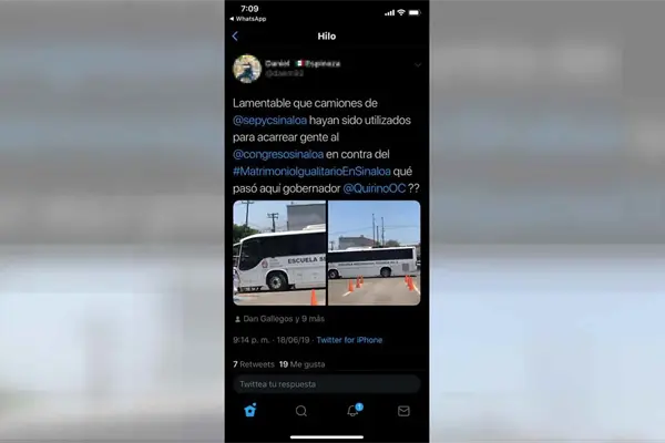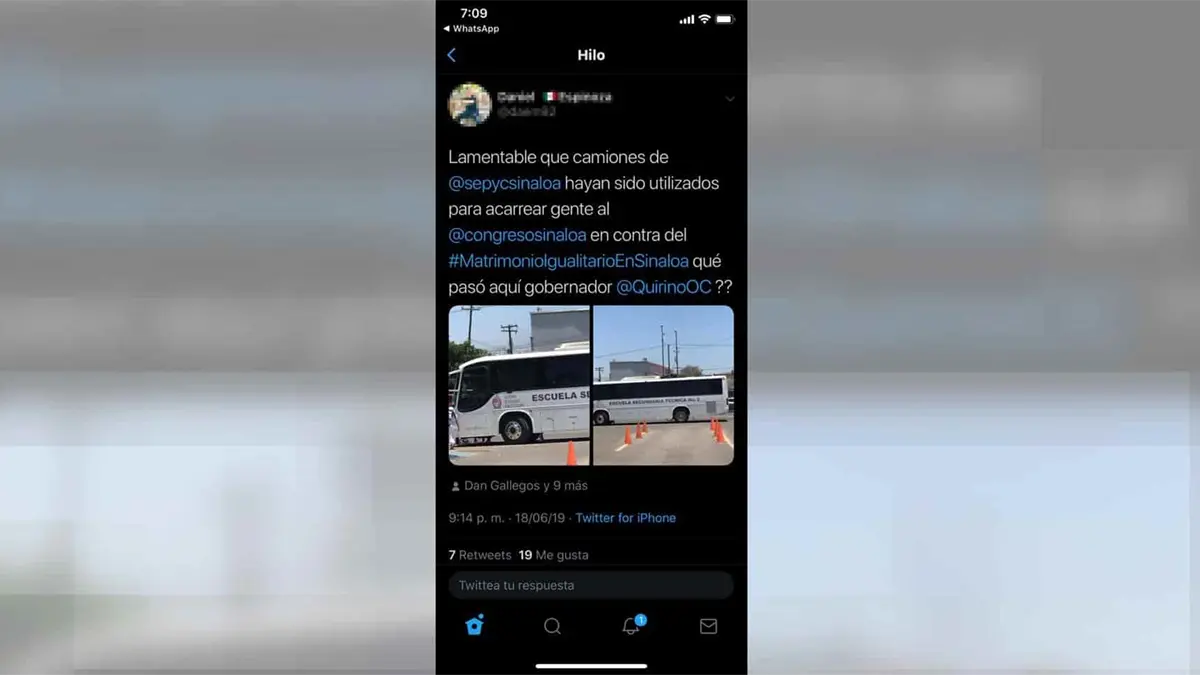 Culiacán, Sin.- En redes sociales se viralizaron unas imágenes en donde se presume se trata de camiones con logotipos de la Secretaría de Educación Pública y Cultura (SEPyC), que supuestamente movilizaron a manifestantes religiosos para que protestaran en contra del matrimonio igualitario en el Congreso del Estado.