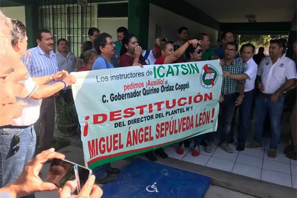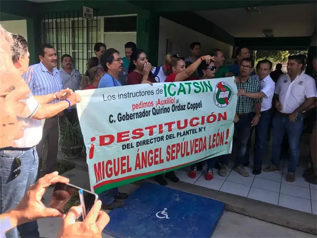 Culiacán, Sin.- Un grupo de maestros del Instituto de Capacitacion para el Trabajador (Icatsin) número 1 en Culiacán, se manifestó para exigir la destitución del Director, Miguel Ángel Sepúlveda León, bajo el argumento de haber sido víctimas de hostigamiento.