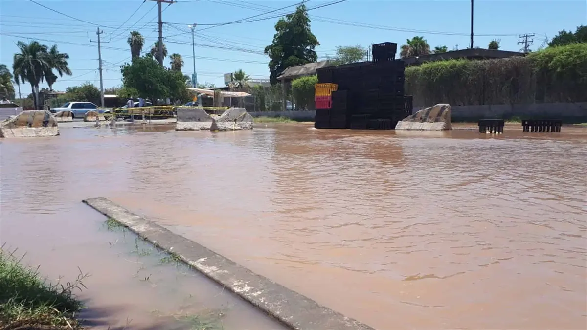 Los Mochis, Sin.- Inundaciones provocadas por la fuga de agua potable, tras el rompimiento de una tubería, afecta desde este mediodía a vecinos de seis calles de la colonia Álamos 1.