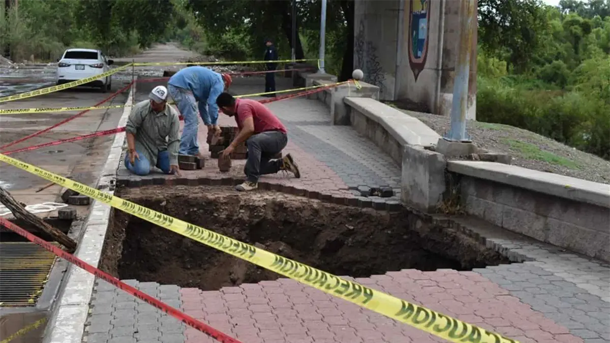 Aparece socavón en malecón "María del Rosario Espinoza", de Guasave