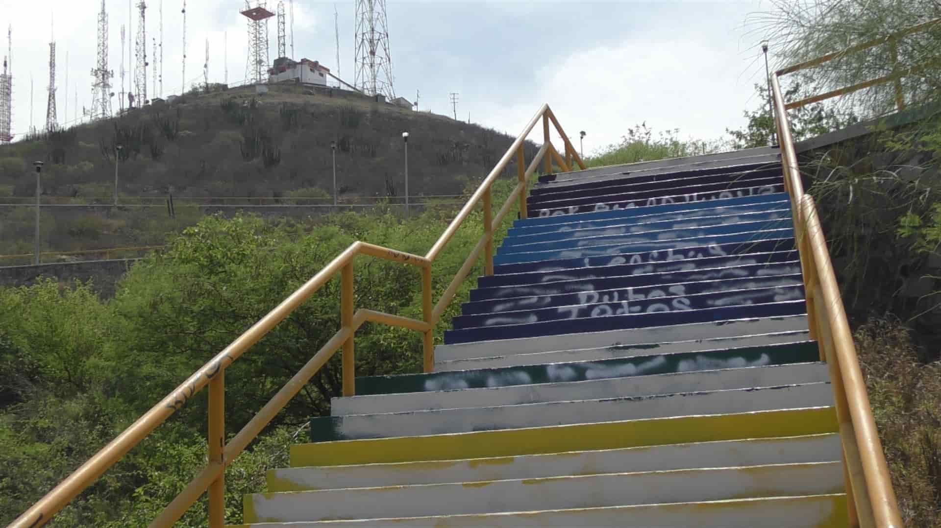 Los Mochis, Sin.- Él área de la escalinata del Cerro de la Memoria que fue pintado de colores por un grupo de jóvenes, en alusión al arcoiris, fue vandalizado por desconocidos, quienes no conforme con dañar la estética de la obra, escribieron mensajes homofóbicos y discriminatorios.