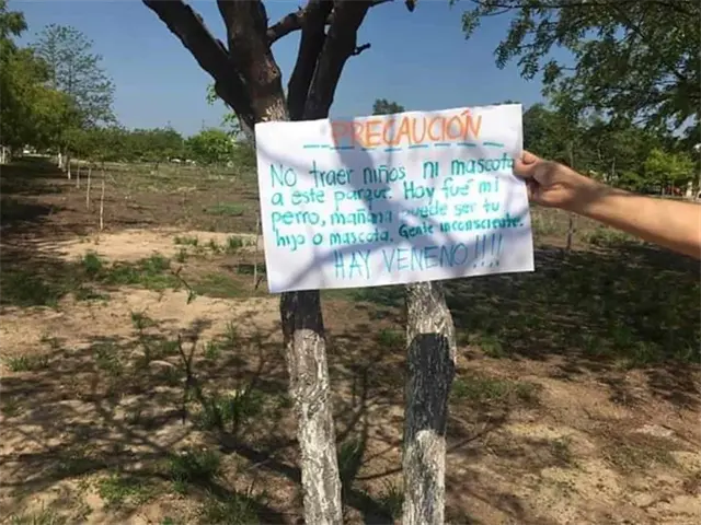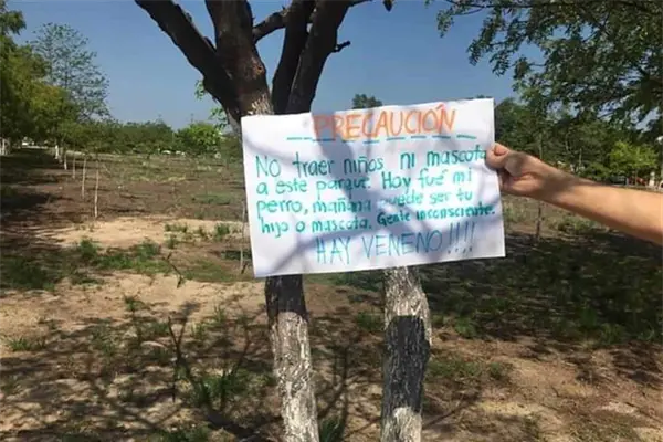 Culiacán, Sin.- En redes sociales se viralizó una imagen en donde se puede apreciar una cartulina que alerta a los vecinos del parque Pradera Dorada en Culiacán, ya que han dejado salchichas con veneno en el lugar, situación que pone en riesgo la vida de los animales.