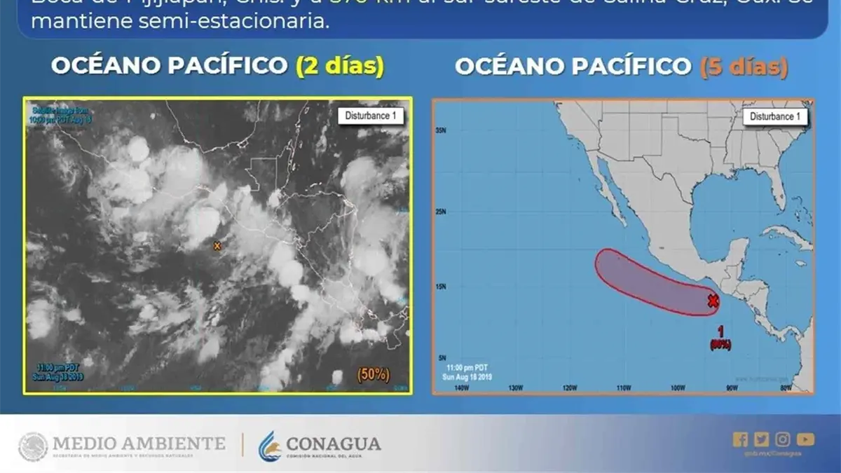 Ciudad de México.- El Servicio Meteorológico Nacional (SMN) informó que una de baja presión en el Pacífico mantiene 50 por ciento de probabilidad para desarrollo ciclónico en 48 horas.
