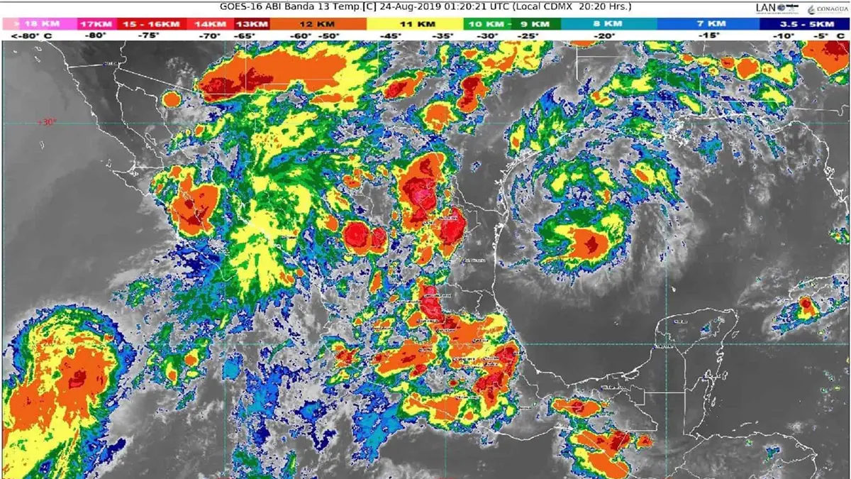 Asimismo, se prevén rachas fuertes de viento y oleaje de 3 a 5 metros (m) en las costas occidentales de Baja California Sur y de 1 a 3 m en las costas del Mar de Cortés, Sinaloa, Nayarit y Jalisco.