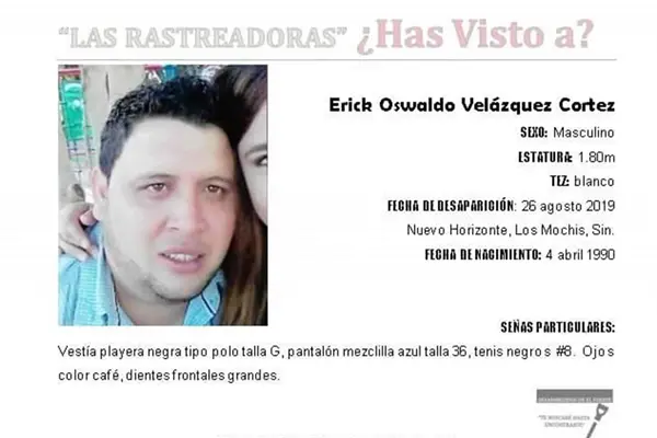 Se trata de Érick Oswaldo Velázquez Cortez, de 29 años de edad, quien desapareció el pasado lunes 26, del fraccionamiento Nuevo Horizonte de Los Mochis.