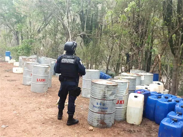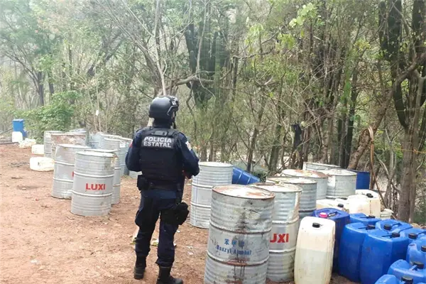 Entre lo asegurado, destacó más de 3 mil 500 litros de precursores químicos, parecido a la metanfetamina y más de 2 mil litros de presunta anfetamina.