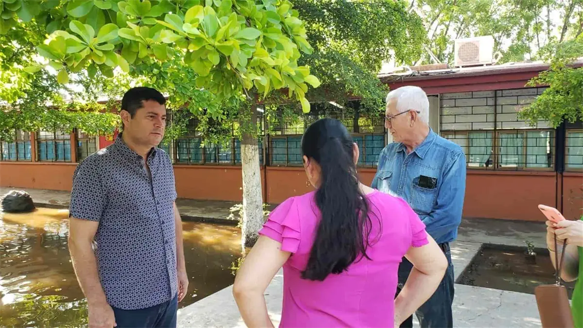 Los Mochis, Sin.- Este martes el Presidente Municipal de Ahome, Manuel Guillermo Chapman Moreno, acompañado del Director de Servicios Públicos Municipales, Iván Gálvez, se trasladaron hasta la escuela primaria José María Morelos de la colonia Anáhuac, atendiendo la petición de la directora para que fuera testigo de las afectaciones que se tuvieron con las recientes inundaciones, quien se comprometió en realizar un estudio de las instalaciones y poder dar solución a ese tema que tanto ha afectado.