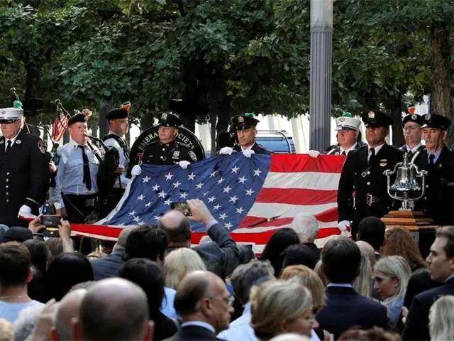 Las familias de las víctimas llevan flores a los monumentos conmemorativos, como el Monumento a las víctimas del 11-S.