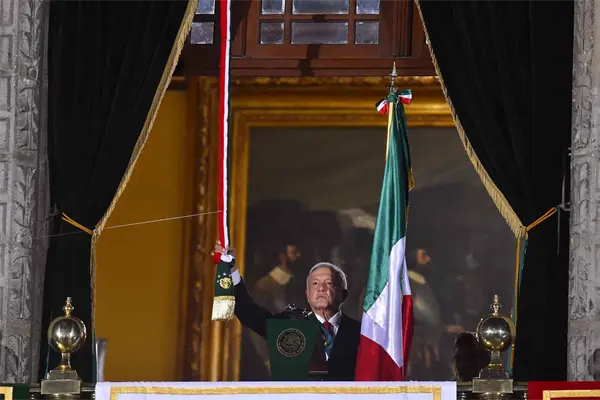 Con "Vivas" a los héroes anónimos y a la democracia, AMLO da el Grito